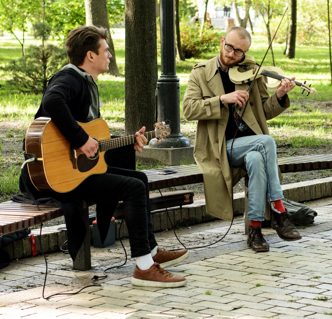 Павло Фрумін (скрипка) і Стас Галайдюк (гітара) музиканти, які формували себе на вулицях Києва, Львова, Берліна та Кракова.