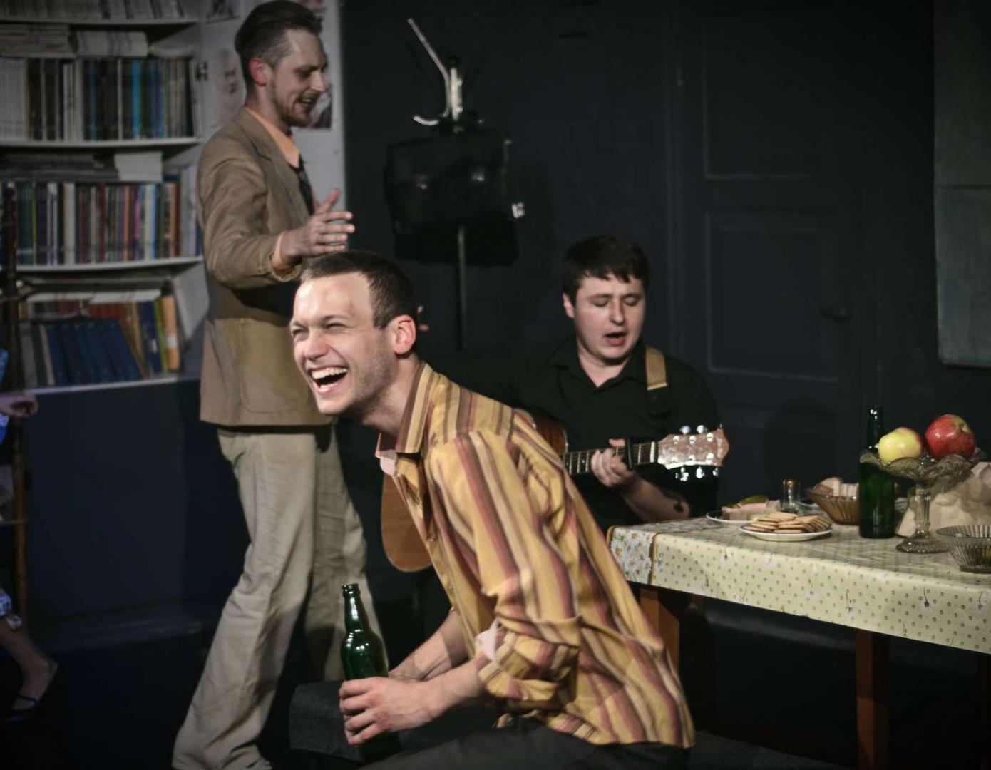 У кімнаті-вітальні, сповненій творчих мрій та закликів, оживають гомінкі постаті поетів-шестидесятників. Їхнє молоде дружнє коло надихає поетичну мить у натягнутій мов гітарна струна атмосфері майстерні. Вірші Г. Шпалікова, Є. Євтушенка, Б. Ахмадуліної, А. Вознесенського, пісні Б. Окуджави та О. Галича, знані з дитинства з книжок та платівок батьків, мов кулі, розтинають начебто безхмарний простір.
