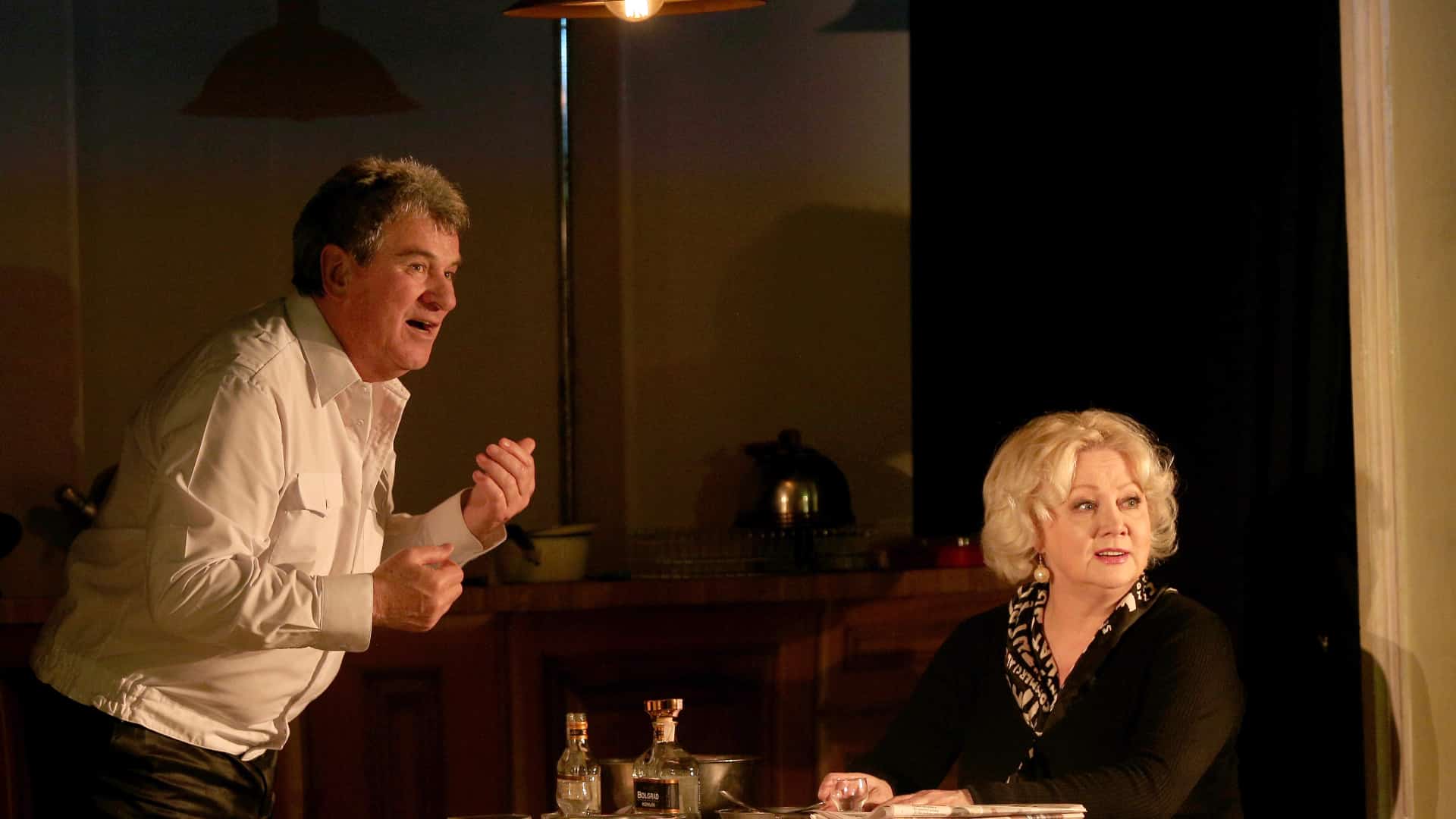 Вистава іде російською та українською мовами, без антракту.