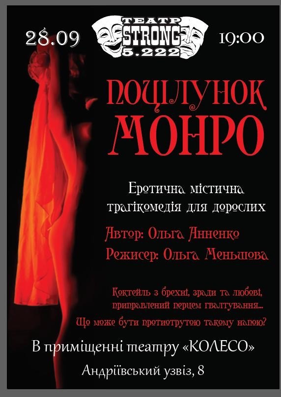 Що з ними сталолося ви побачите в містичній еротичній трагікомедії “Поцілунок Монро”.