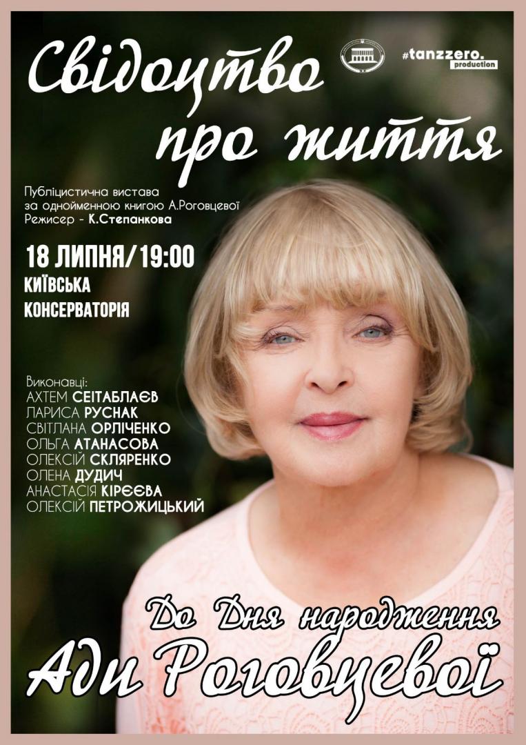 Публіцистична вистава за книгою легендарної акторки Ади Роговцевої. Кожен з артистів грає не просто роль, а цілу галерею незабутніх образів - реальних людей, знаменитих і невідомих.
